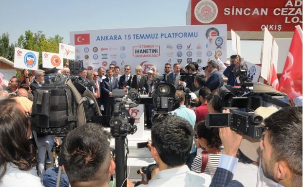 - Halbuki suçlamalar benzer olduğu halde bugünün duruşmalarında sanık yakınlarının gösteri yapması, çadır kurması bir yana, tam tersine parti teşkilatlarından görevlendirilip vardiyalar halinde Sincan’a getirilenler sanıklara sataşıyor, yakınlarına hakaretler ediyor.