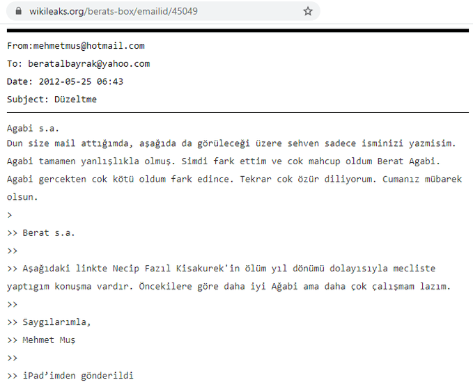 • 2015 yılına geldğimizde erisah arican ile berat albayrak arasındaki yazışmaların parti içi faaliyetler ilgiili olduğunu görüyoruz. erişah hanım artık “sayın hocam” diye hitap ettiği berat albayrak’a kürtlerin “kanaat önderleri” konusunda bilgiler veryor. https://t.co/zbmnSTKfwZ