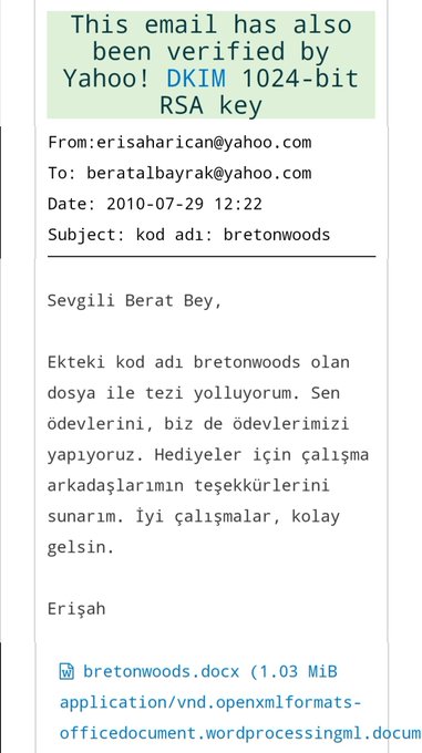 • temmuz 2010’da erişah hanım berat bey’e “ekteki kod adı bretonwoods olan dosya ile tezi yolluyorum.” der. yani berat bey’in yazması gereken tezi danışman hocası yazıp onun onayına sunmuştur. bu süreçteki hediyeler için teşekkür etmeyi de ihmal etmemiştir. https://t.co/IyBATzsyTF
