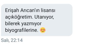 • ya çok önemli değil ama ısrarla gizlediği için ister istemez merak ediyorum. erişah arıcan lisans eğitimini nerede tamamladı? siz de bulamadınız değil mi? evlenmeden önceki soyadının abdurrahimoğlu olduğu özel mesajla geldi. ama bu da asıl aradığım bilgiye ulaşmama yetmedi.