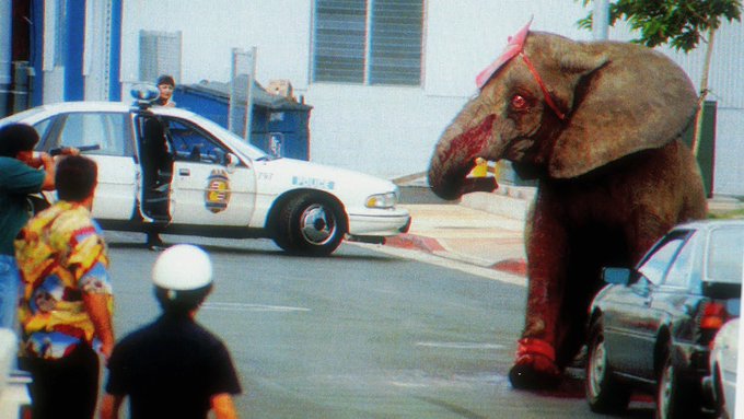 • Korku ve panik içinde, nereye gittiğini bile bilmeden bir oraya bir buraya koşuyor, önüne çıkan herkesi savuruyordu. Daha sonra polisler geldi. Ne yapacağını bilemeyen bu korkmuş file ateş etmeye başladılar. Dört bir yanından mermiler vücudunu deliyordu. Kaçacak yeri yoktu.
