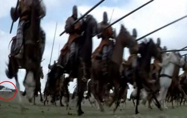 - Cesur Yürek filmindeki bir savaş sahnesinde, arkadan beyaz bir arabanın geçtiği açıkça görülüyor.