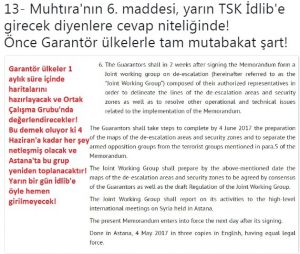 - Bu anlaşma metninin dayanağı olan BM- Güvenlik Konseyi kararının 8. maddesinde Rusya – Türkiye – İran terör örgütü olarak YPG’yi görmüyor!