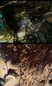 - Duvarlardaki çizimlerde boynuz ve boynuz miğferli, elinde boynuz asa tutan, biri yıldız haritaları, gezegen üzerinde boynuz miğferli bir adam, deniz altında boynuz, dünya üzerinde üç boynuz.
