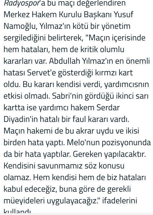 Sonuç; ▪️Hakemlerimiz Yusuf Namoğlu’nun ağır baskısı karşısında ezilmektedir ve buna bir an önce müdahale edilmelidir. ▪️Hakemleri baskı altına alıp, onların ekmeği ile oynayabilen bir MHK başkanının olduğu lig ne kadar adil olabilir? Bir VARmış Bir yokmuş Yusuf Namoğlu’nun öyküsü burada bitmiş…