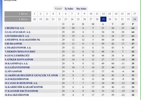 • Ne yaptılarsa gs’yi bir türlü lider yapamadılar. O kadar kötü bir futbol oynuyorlardı. 29. Hafta itibari ile puan durumu bu.