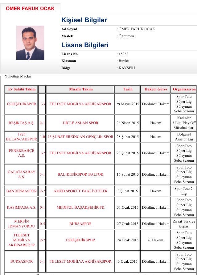 • Ömer Faruk Ocak bu sezonda Fenerbahçe’nin 2-1 kaybettiği Akhisar maçının 4. Hakemidir. O maçtan Sonra başına gelmeyen kalmamıştır. Başına gelen hikaye gerçekten ibretliktir.