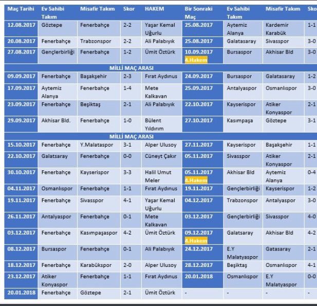 • Buraya kadar normal diye düşünebilirsiniz ama inceledikçe işin boyutu değişiyor. Beşiktaş maçlarından sonra 18 haftada 5 hakem sonraki hafta görev alıyor. Bu 5 maçın dördü Beşiktaş’ın puan kaybettiği maçlar olması tesadüf mü acaba.