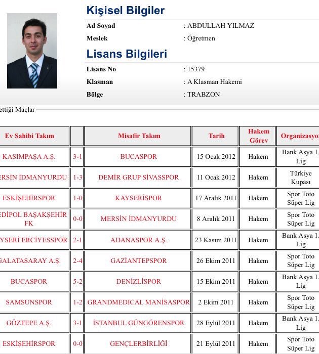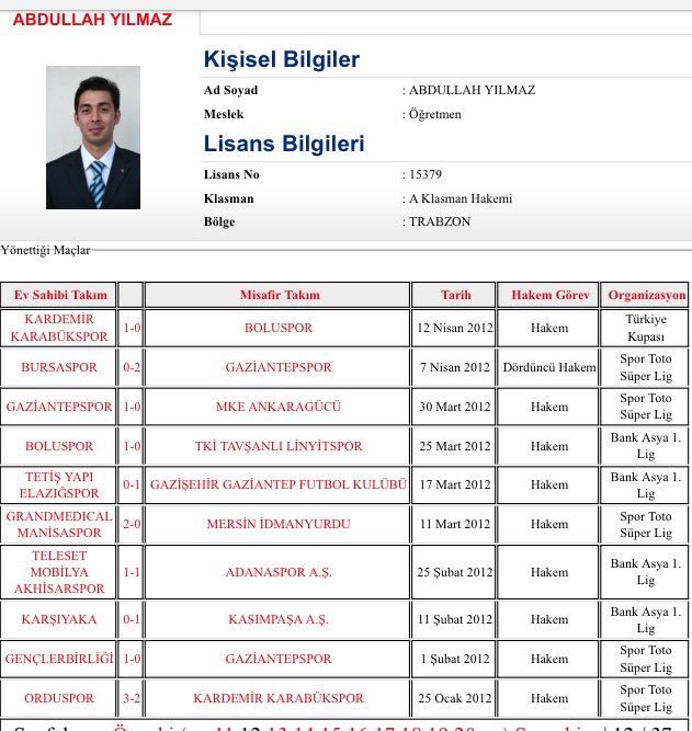 • Abdullah Yılmaz için 2011-2012 sezonu iyi başlıyor. Ne oluyorsa 8. Hafta yönettiği Galatasaray’ın 4-2 yenildiği Gaziantepspor maçından sonra oluyor Ve Yusuf Namoğlunun gazabına bundan sonra uğramaya başlıyor.