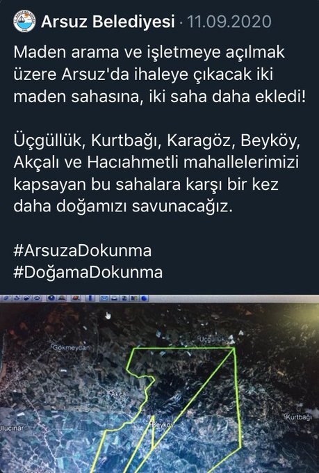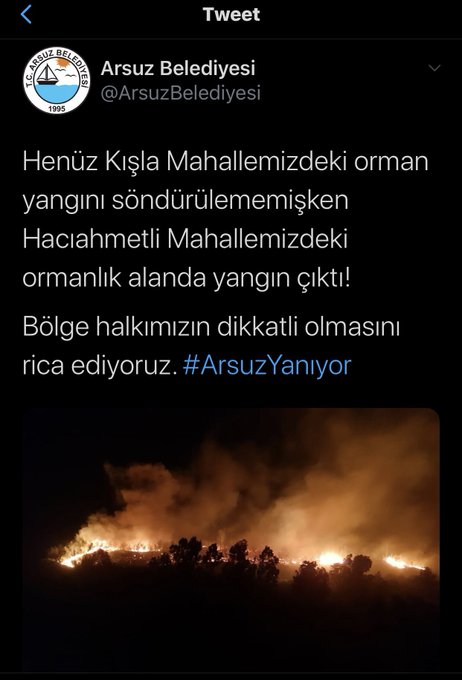 - Sabotaj demişken ; bunu da eklemeliyim . Yakın zamanda bu yanan bölgelere ilişkin , arsuz belediyesinin attığı tweet. Yazık. Çok yazık …
