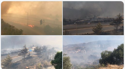 - Aşağıdaki fotoğraflarlar otoban kavşağından çekilen fotoğraflar . Rüzgarın şiddetiyle şehir merkezine doğru ilerledi alevler.