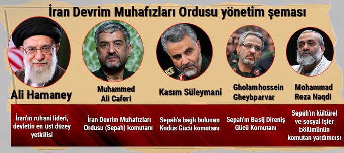 - İran’ın Dış Operasyonlar Özel Birimi: Kudüs Gücü, 1990 yılında kurulmuştur. Bu kuruluşun amacı İran Devrimi’nin İran sınırlarının ötesine geçmesini sağlamaktır, doğrudan devrim liderine bağlıdır ve 1998 yılından beri Kasım Süleymani tarafından komuta edilmektedir.