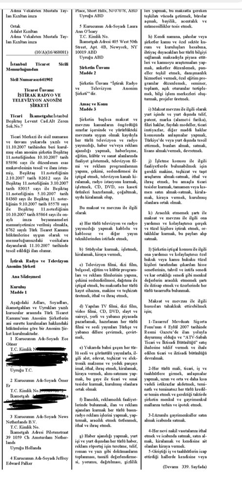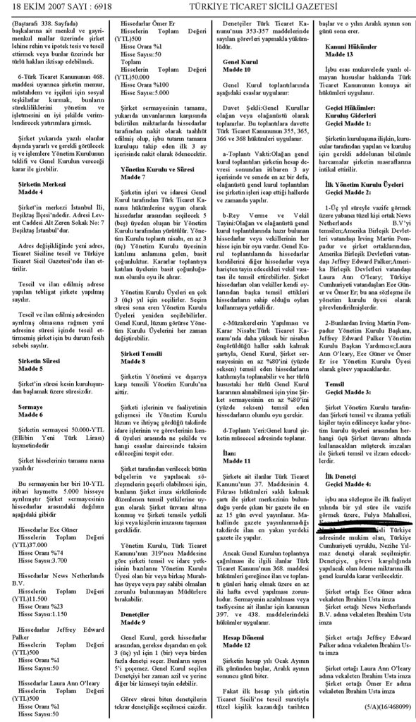 - Şirketin kurucuları ise ilginçtir… Şirketin kurucusu olan 5 kişiden 3’ü yabancıdır… Bunlar “tüzel kişilik olarak” kurucu olan Hollandalı News Ntherland B.V, ABD’Lİ Jeffrey Edward Palker ve yine ABD’li Laura Ann O’leary’dir…