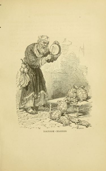 - Gelelim Kaplumbağa Terbiyecisi’ne… Osman Hamdi Bey, Fransız Le Tour du Monde’nin 1869 yılındaki bir sayısında çıkan gravüründen esinlendiği tahmin edilmektedir.