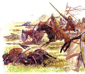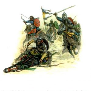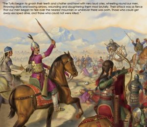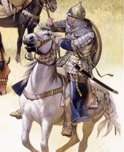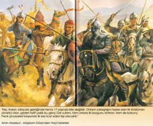 Örgülü, uzun saçları ve mavi kaftanıyla Kılıç Arslan – Dorileon Muharebesi (1097)