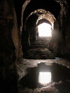 - Onun da ilerisinde hamamın kurnaları ve biraz büyükçe bir mermer havuz. Yarı yıkık kubbeden güneş ışığı doluyormuş. İçerisi pislik içinde.