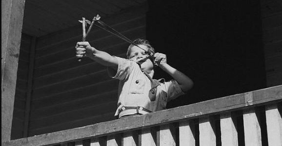 - Herkesin elinde sapan sağdan soldan çakmak taş topluyor, ben de bir iki ağaç dalını kırıyorum çatal gövde lazım, sapan yapmanın temel kriteridir bu bilen bilir. Arka mahalleleri dolanıyor, patlak balon arıyorum, bir iki balon bulabilsem afili bir sapan yapacağım.
