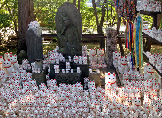 - Tokyo’nun Setagaya semtindeki Goutokouji Tapınağı kedi Tama ve Maneki Neko’ların doğum yeri olarak sayılır ve her yıl binlerce turist ağırlar. Tapınağın bahçesinde yüzlerce Maneki Neko figürü vardır ve girişi ücretsizdir.