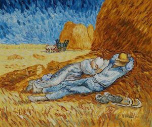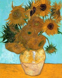 - Van Gogh’un 1890 yılında yaptığı “Buğday Tarlası ve Kargalar” adlı yapıtına baktığımızda mavi ve griler içeren bir gökyüzü sarı renkte bir tarla ve ortadaki yolla diyagonal bir çizgi oluşturan karga sürüsü görülmektedir. Resimde üç yöne giden yollar hiçbir yere çıkmaz…