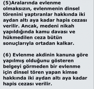 • Bilindiği üzere, TCK’da resmi nikahtan önce dini nikah yapılması 230. maddenin 5 ve 6. fıkralarına göre hapis cezasını gerektiriyordu.