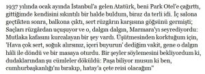 • Atatürk Ocak ayında aniden İstanbul’a geçip, Fahrettin Paşa’yı yanına çağırır. Fahrettin Paşa yıllar sonra o anları şöyle anlatır;