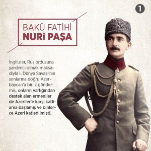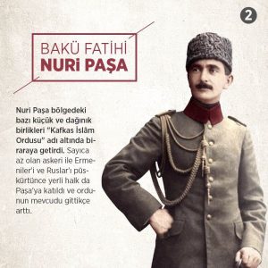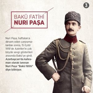 - Haftalarca devam eden çarpışmalar sonucu büyük sevgi gösterileri ile Bakü’ye giren Nuri Paşa, Azerbaycan’da ‘Bakü Fatih’i’ olarak biliniyor.