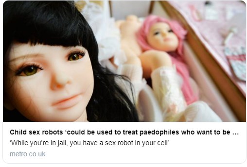 - İngiliz Metro gazetesinde çıkan bir haberde “uzmanlar” pedofililere, kendileri için özel üretilen “çocuk sex robotlarının” tavsiye ediyor.