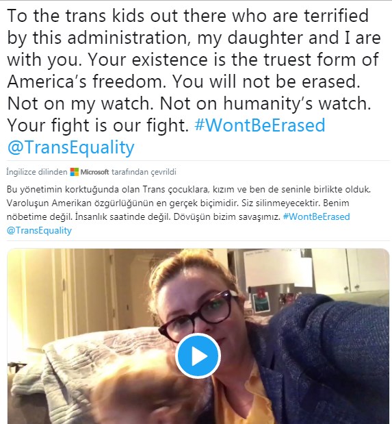@ambertamblyn, trans çocuklara sahip çıkmak için (!) gerçekleştirdiği bir paylaşımda kendi çocuğunu kullanıyor. Trans çocuklar için “varlığınız Amerika’nın özgürlüğü” diyor.