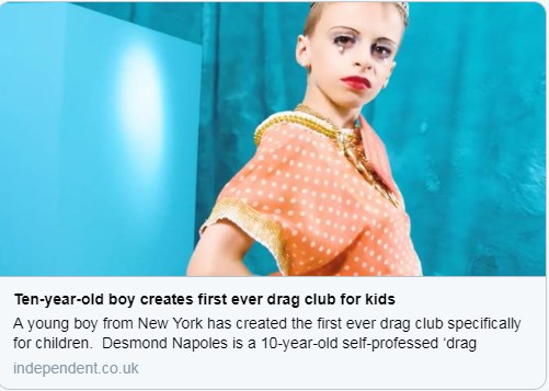 - 10 yaşındaki trans çocuk Desmond Napoles kendi gibi olan çocuklar için bir sosyalleşme sitesi açıyor. Independent haberi verirken çocuktan “child” (çocuk) değil A YOUNG BOY (bir genç) diye bahsediyor.