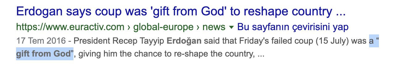 ♦️-A GIFT FROM GODS, dedi.2016, Recep Tayyip Erdoğan, Meclis bombardımanlı sözde darbeden söz ederken,