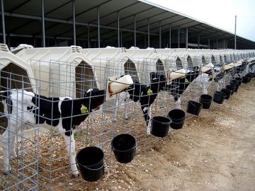 • Dişiler ise buzağı boxları denilen tek kişilik bölmelere alınır ve önlerindeki kovadan yem yiyip biberondan süt içmek zorunda bırakılır.