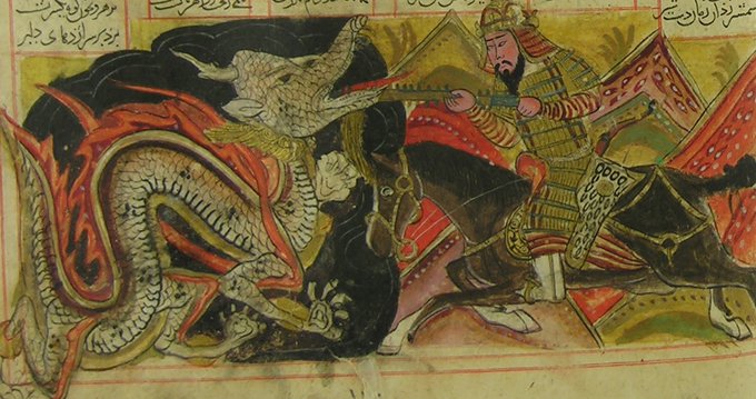 - Keyhüsrev döneminin bu meşhur pehlivanı, İran-Turan savaşlarının merkezinde yer alır ve defalarca Efrâsiyab’a karşı galip gelir. O sadece insanları değil; fil, ejderha, devlerin yanı sıra hayalî varlıkları da mağlup eder.