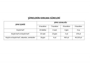 - Sosyal medya hesaplarının şifrelerinin kırılma süreleri ek görseldedir.