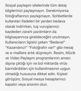 - Sosyal medya hesaplarınızda dikkat etmeniz gerekenleri özet olarak yazdım. Anonim olun, fotoğraflarınızı paylaşmayın.