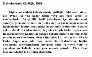 - Haberleşmenin gizliliği ihlali. İfşa ettiğiniz mesajların suç teşkil ettiğini biliyor muydunuz? Bilseniz iyi olur çünkü hapis cezası var.