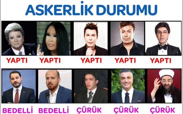 Alın size flood oğlu flood: Evinde oturduğu yerden klavye başında, askerimizin yanındayız diyen Alişan’ın askere gitmemek için bıraktığı futbola geri döndüğünü biliyor muydunuz? Ya da eşcinsel diye yaftalanan Zeki Müren’in 15 ay askerlik yaptığını biliyor muydunuz? Bizim zamanımızda askere gitmeyenleri adam yerine koymazlardı, toplumdan dışlarlardı diyen cumhurbaşkanının çocukları ve damatlarının askere gitmeyip çürük aldıklarını ya […]