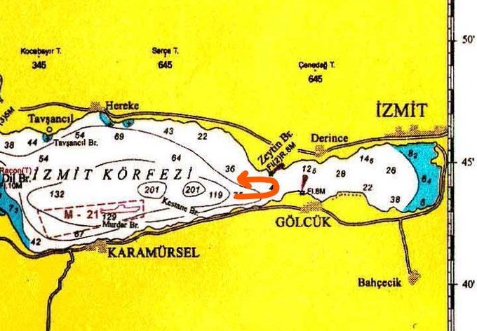 - Gemi 2’nci Hücumbot Komodoru Levent Kerim Uça’nın verdiği emir sonucu Gölcük’e intikalini kesmiş ve yine komodorun emriyle Marmara Eğitim Sahalarına intikale geçmişti. Komutan ve 4-5 subay sancak kırlangıçta konuşuyor, cep telefonlarına bakıyorlardı.