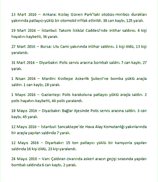 - Ayrıca 15 Temmuz 2016’dan önceki yaklaşık son bir yıl içerisinde tam 15 tane büyük terör saldırısı gerçekleşti. Bu saldırılarla toplam 331 vatandaşımız can verdi, 1300 civarında vatandaşımız da yaralandı.