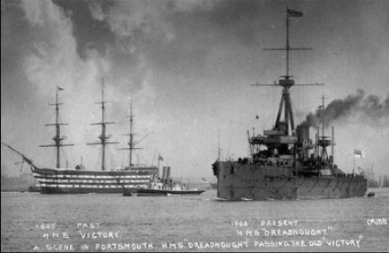 - Elimdeki fotolar: Özellikle Şu son görsel çok ilginç. Görseli @cosmossevren hocamın profilinde görmüştüm geçenlerde.Bir yanda Nelson’ın gemisi HMS Victory (modernize edilmiş haliyle) bir yanda da hocanın tabiri ile muharebe gemisi çağını açan devrimsel tasarımıyla HMS Dreadnought.