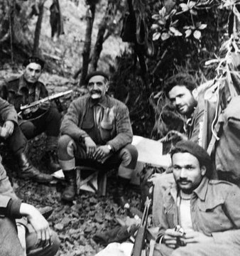 - Soldan sağa Binbaşı İsmail Tansu, General Dâniş Karabelen, Rauf Denktaş, Yüzbaşı Cemal Biber. (Zir Vadisi, Mücahit eğitim kampı)