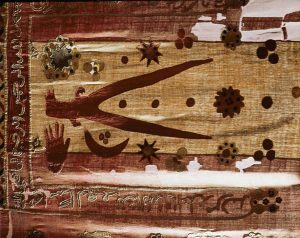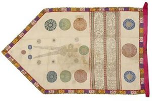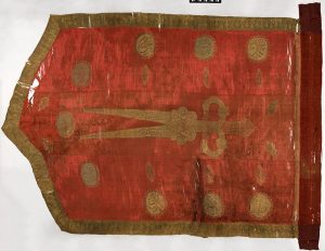 • Barbaros Hayrettin Paşa’nın sancağına benzeyen 15.yy. Türk Osmanlı sancak. Yine üzerinde Kurt-Ejder motifli bir kılıç.