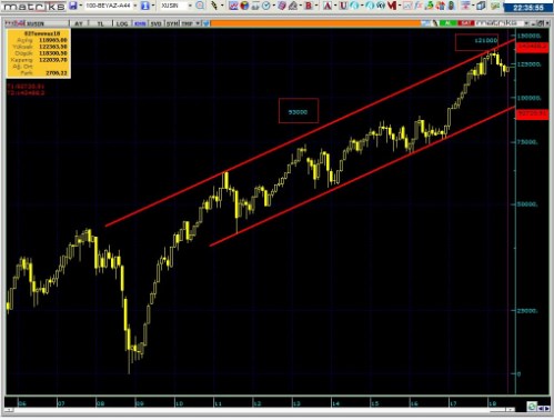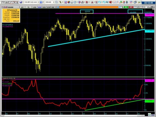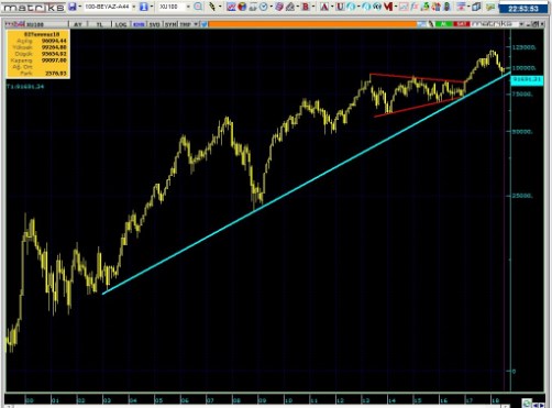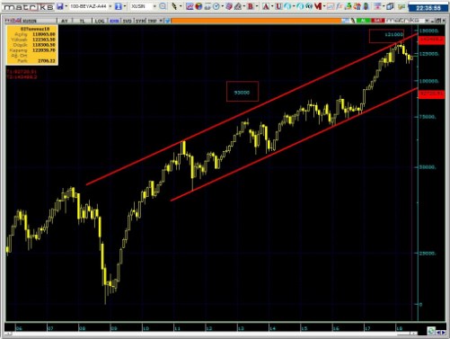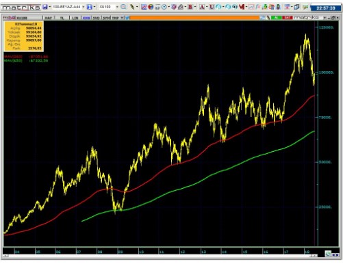 • En iyi şartlar kısa vade oluşmadığı takdirde , endeksin kısa vade zirvesine max %5 yakın olduğunu söylemek zorundayım. Yönetimin kötü icraatları olması halinde maalesef grafikteki 2001 den beri gelen trendin aşağı kırılmasını bekleyeceğimi söylemek zorundayım.