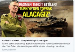 Bir İsrail generalinin Türkiye dahil 3 ülkeden toprak alacağız demesinin ne manaya geldiğini iyi düşünün. Uyan Türkiye..!