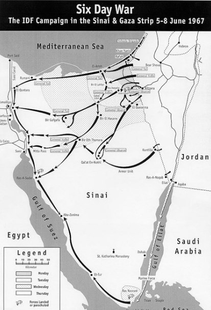 • Bu barış kelebeği müsameresi bittikten sonra 5 Haziranda İsrail hava kuvvetleri Mısır’ın kuzeyindeki ve Sina yarım adasındaki bütün hava üslerini bombaladı. Sonra kara birlikleri Sina’dan Mısır topraklarına girdiler. Hedefte Kudüs şehri de vardı.