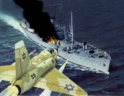 • İnanması güç geliyor: İsrail ordusuna ait 3 hücum bot, 2 Mirage ve 2 Mystère jeti bir Amerikan savaş gemisine saldırıyor; 37 Amerikan askeri ölüyor; 200’e yakın yaralı var. Gemi neredeyse batacak; soğuk savaşın ortasında 2 Rus destroyeri gelip Amerikalıları kurtarıyor.