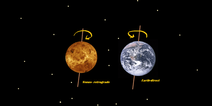 - Dönme hareketi diğer gezegenlerin tersi yönündedir ama dolanma hareketi de burada önemlidir. Dolanma yörüngesinin düzgün bir çember, diğer gezegenlerin eliptik bir yörüngede olmasının etkisiyle, belirli dönemlerde retro (geriye dönüş) hareketle yoluna devam ettiği söylenebilir.