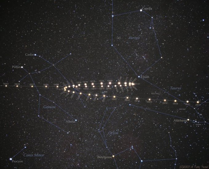 - Bu hareketi fotoğrafta farklı dönemlerde aynı konumdan çekilerek düzenlenmiş fotoğraflarda görebilirsiniz. ( foto;Tunç Tezel/APOD)