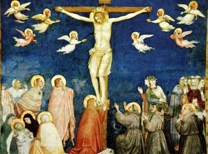 - söylerler. Genellikle bu sahne resmedilirken İsa yanında diğer iki hırsız ile resmedilir. Üç Meryem çarmıhın altında acı çekerken resmedilir