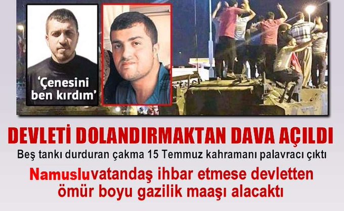 - 15 Temmuz’da beş tankı durduran bir kahramanın Sabah Gazetesinde haberi çıktıktan sonra sahipsiz bırakılması mümkün değildi. Nitekim ilk kaymakamlıktan aradılar Gazi Zafer’i sonra belediyeden.. Bu arada Onaran AKP tarafından ‘kahraman’ ilan edildi. Gazilik maaşı bağlandı. Gazeteciler haber yapmak için sıraya girdi. Onaran, her ay bankamatikten hesabına yatan gazilik maaşını almaya ve iktidar tarafından çağrıldığı davetlerde boy göstermeye başladı. Beş tankı durduran adam olarak hayatın tadını çıkarıyordu. Gördüğü iltifat başını döndürmüştü. Hikayesinin alıcısının çok olduğu yıllardı.